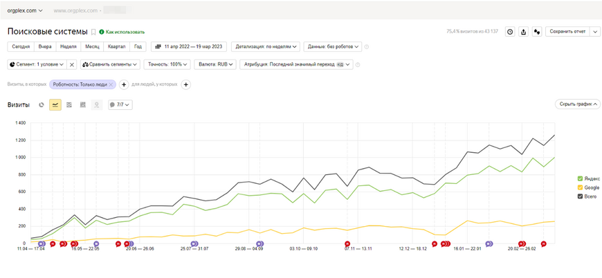 Оптимизация сайта и наращивание внешней ссылочной массы для увеличения естественного трафика из поисковых систем Яндекса и Google