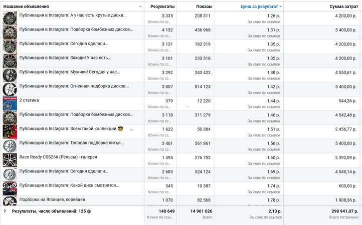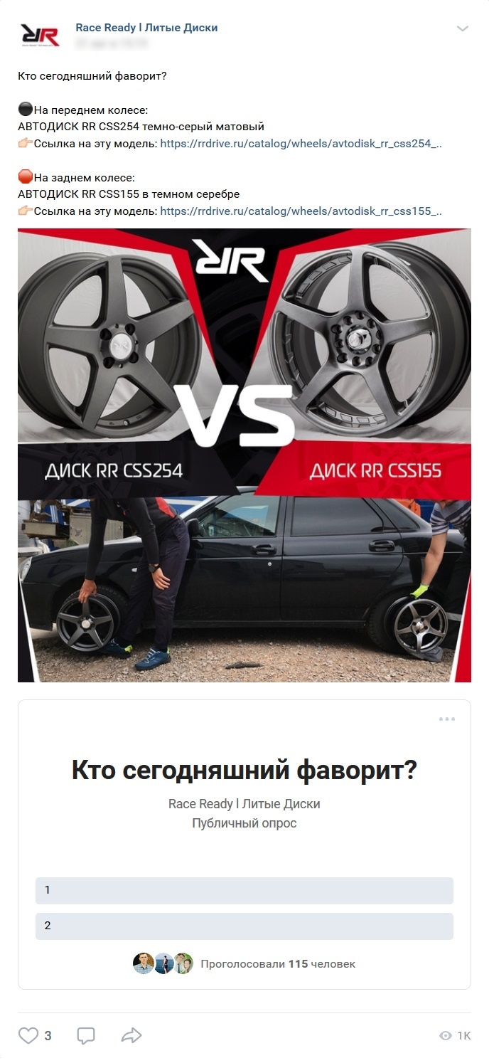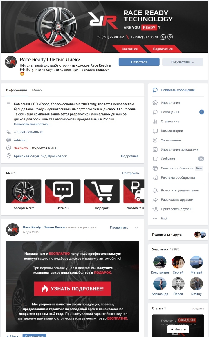 Цель: Присутствие бренда в социальных сетях. Получение заявок и продаж автомобильных дисков на розницу