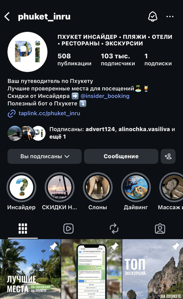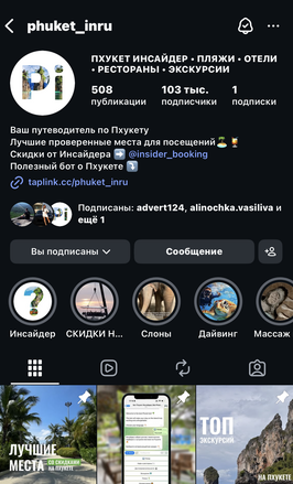 Самый узнаваемый полезный аккаунт о Пхукете среди русскоязычных туристов и экспатов. Более 100к подписчиков в русском аккаунте, более 3м просмотров ежемесячно