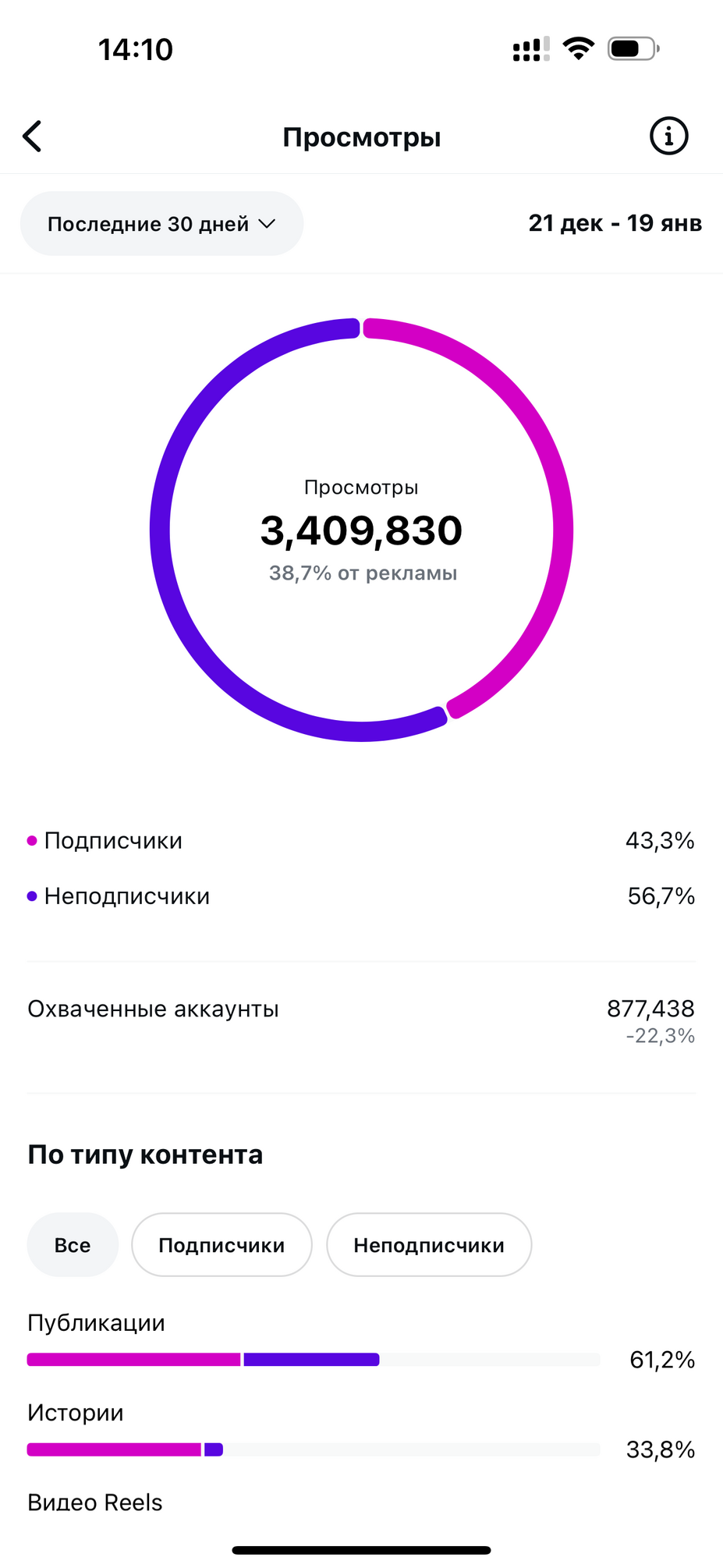 Более 100к подписчиков в русском аккаунте, более 3м просмотров ежемесячно