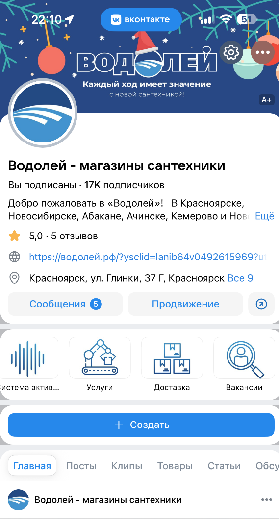 Развивать VK как основной канал коммуникации с аудиторией, увеличивать число подписчиков и вовлечённость, формировать узнаваемость бренда и доверие к сети Водолей